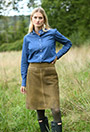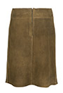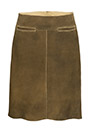 Sämisch gegerbtes, samtweiches Hirschleder vom europäischen Rothirsch wurde in diesem Rock verarbeitet. Der Rock hat einen Formbund, zwei Paspeltaschen und einen Reißverschluss in der hinteren Mitte.
